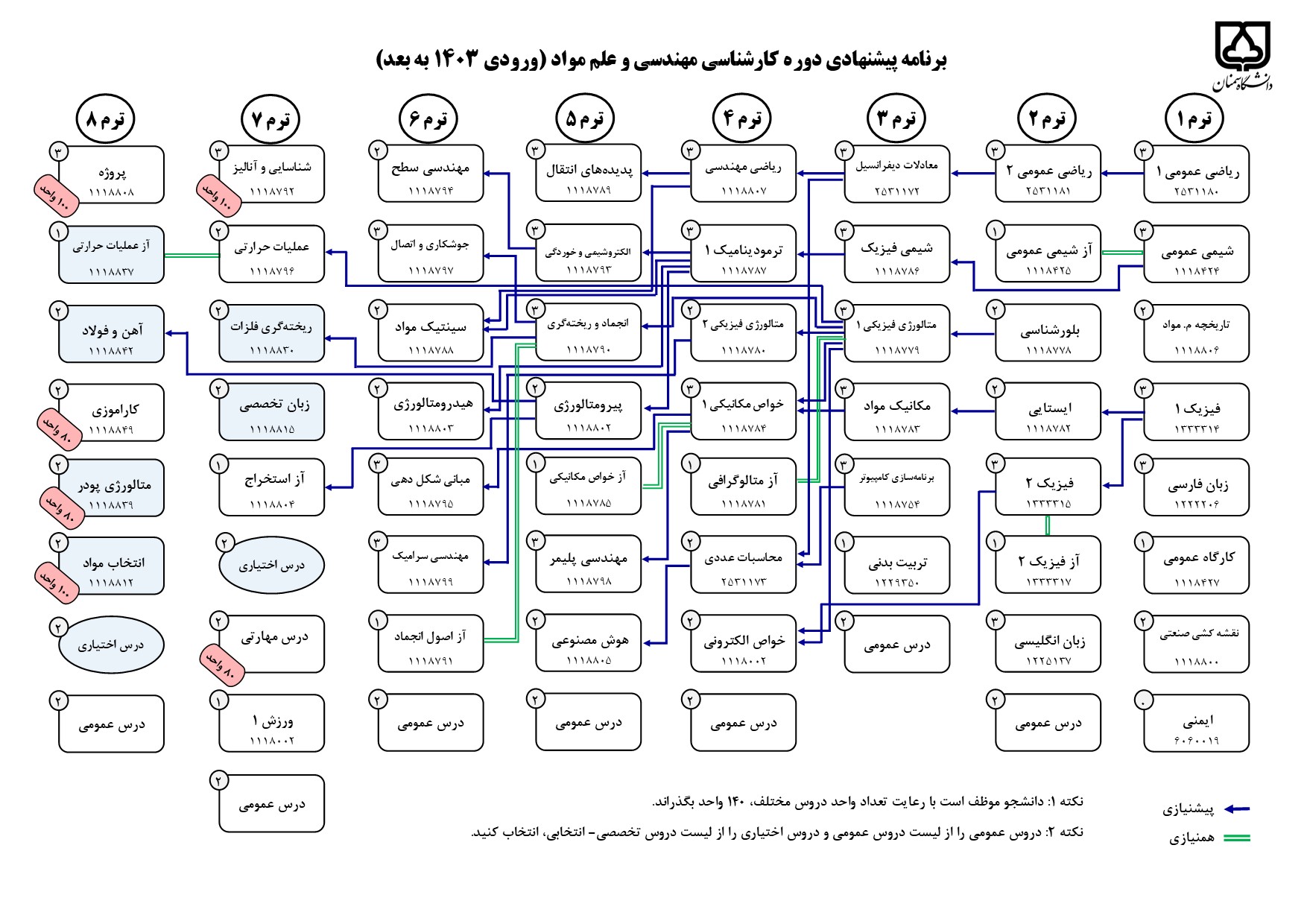 سرفصل دروس کارشناسی گرایش مهندسی و علم مواد